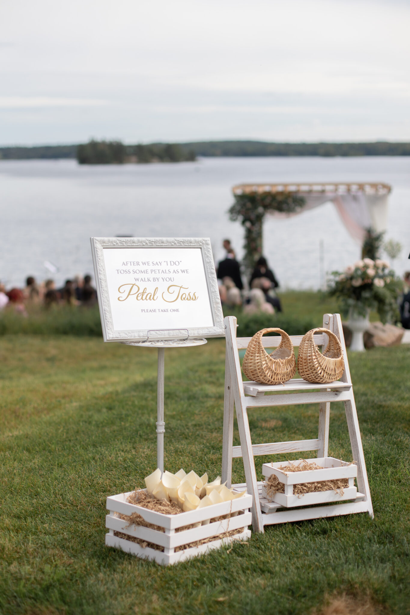 “Viamede Resort on Stony Lake is where we chose to say our vows in front of 100 guests. We are a very laid-back, stress-free, and casual couple, so we wanted our wedding to reflect that. We rented out the entire resort for the weekend and invited our closest friends and family along with us to celebrate our cottage wedding weekend.