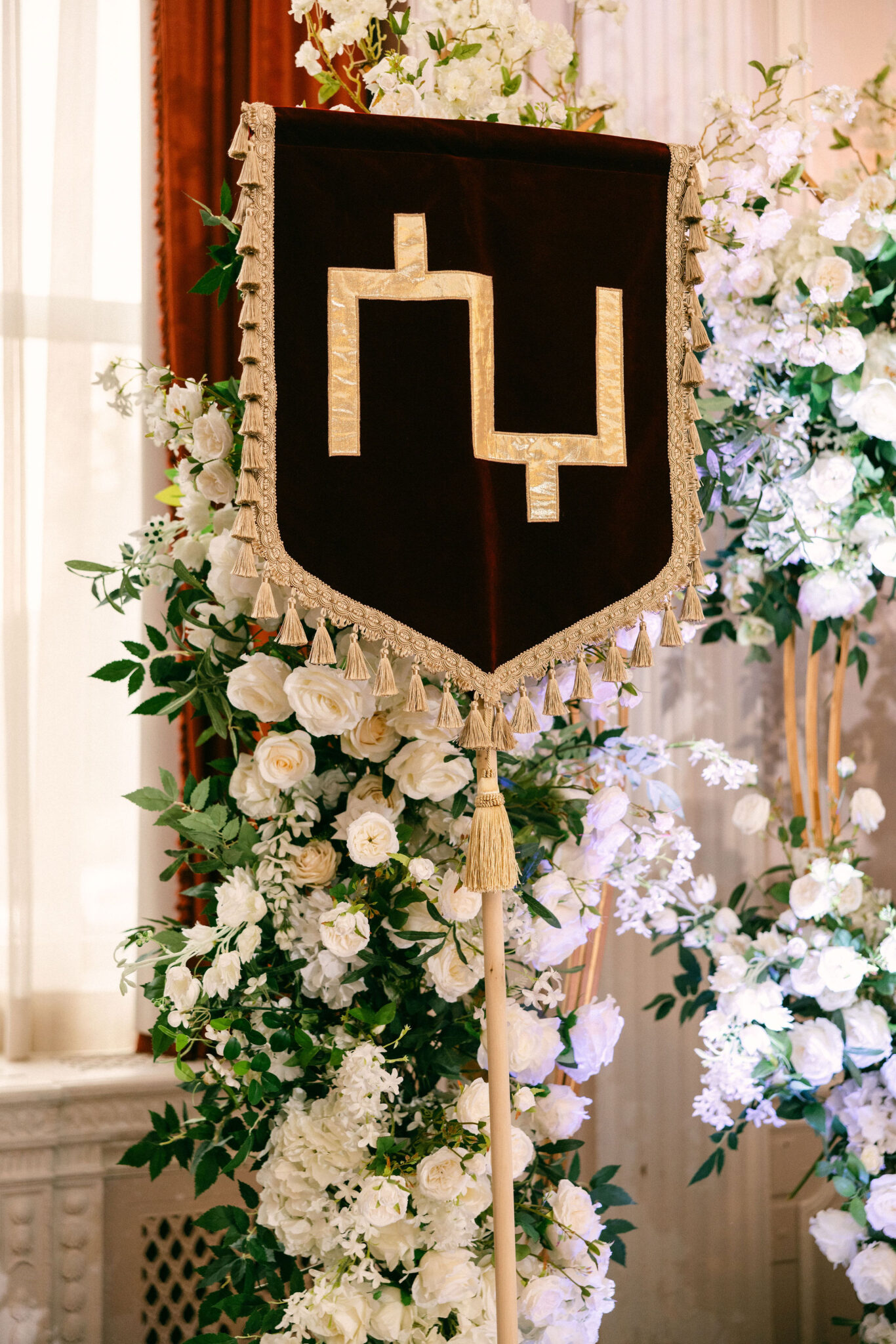 Dance is an integral part of Circassian culture. Prior to their first entrance, a choreographed Circassian group dance of 30 people surprised their 200 guests and welcomed the couple for their first dance. “As we entered our Fairmont Château Laurier wedding reception, wearing our traditional Circassian attire, we had two relatives from each side carry our family crests and walk behind us in a display of tradition. These family crests, passed down through generations for centuries, symbolize our rich history and connection to our ancestors.”