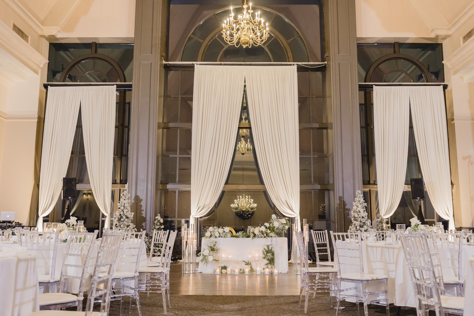 The evening unfolded in opulent grandeur. The reception hall, adorned with white flowers and lush greenery, exuded elegance and romance. Throughout the evening, every detail spoke of Miles and Neil’s journey together. The signs, lovingly crafted by the bride’s friend, added a personal touch to the celebration. And true to their shared love for bubble tea, a stall from their favourite store delighted guests with its sweet offerings.