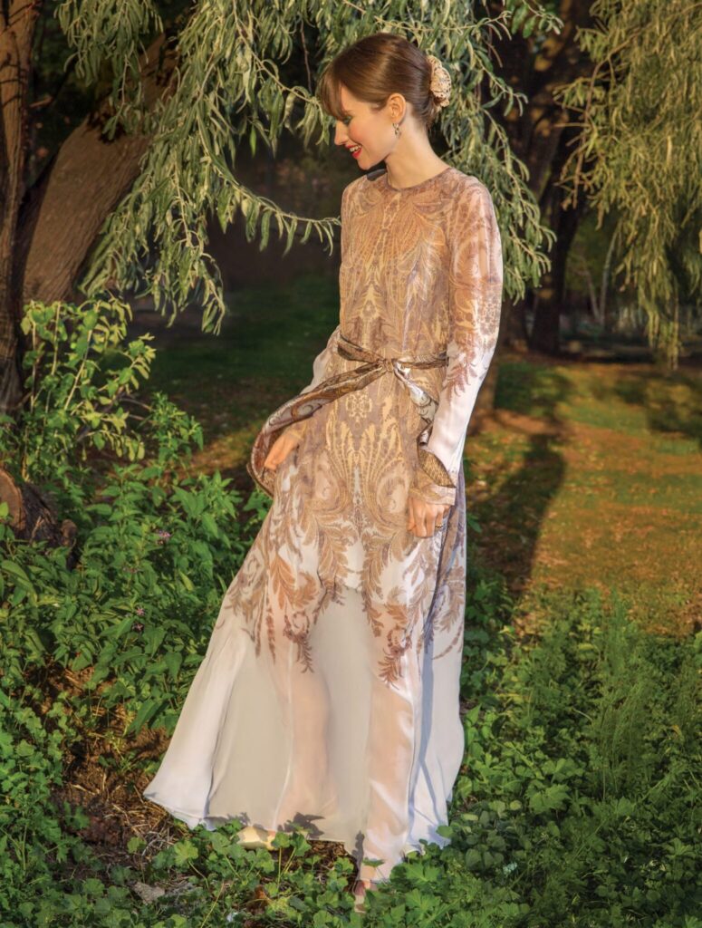 Dress, Zimmerman, Holt Renfrew; earrings, Erica Leal; ring, RYBKO; shoes, Maguire.