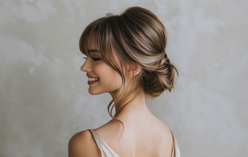 A low chignon sits at the nape and reads timeless in photos. It can be sleek for a modern venue or softly pulled to whisper “romance.” This placement preserves necklines and earring space, works with veils or no veils, and keeps hair off shoulders for humid weather. On fine hair, a little padding or a donut creates volume without teasing. On thick or coily hair, a chignon can be a tucked roll or coiled bun to celebrate texture rather than hide it.
