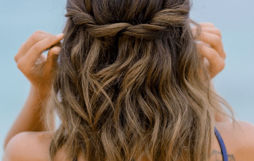 - Fishtail half-up with lived-in waves