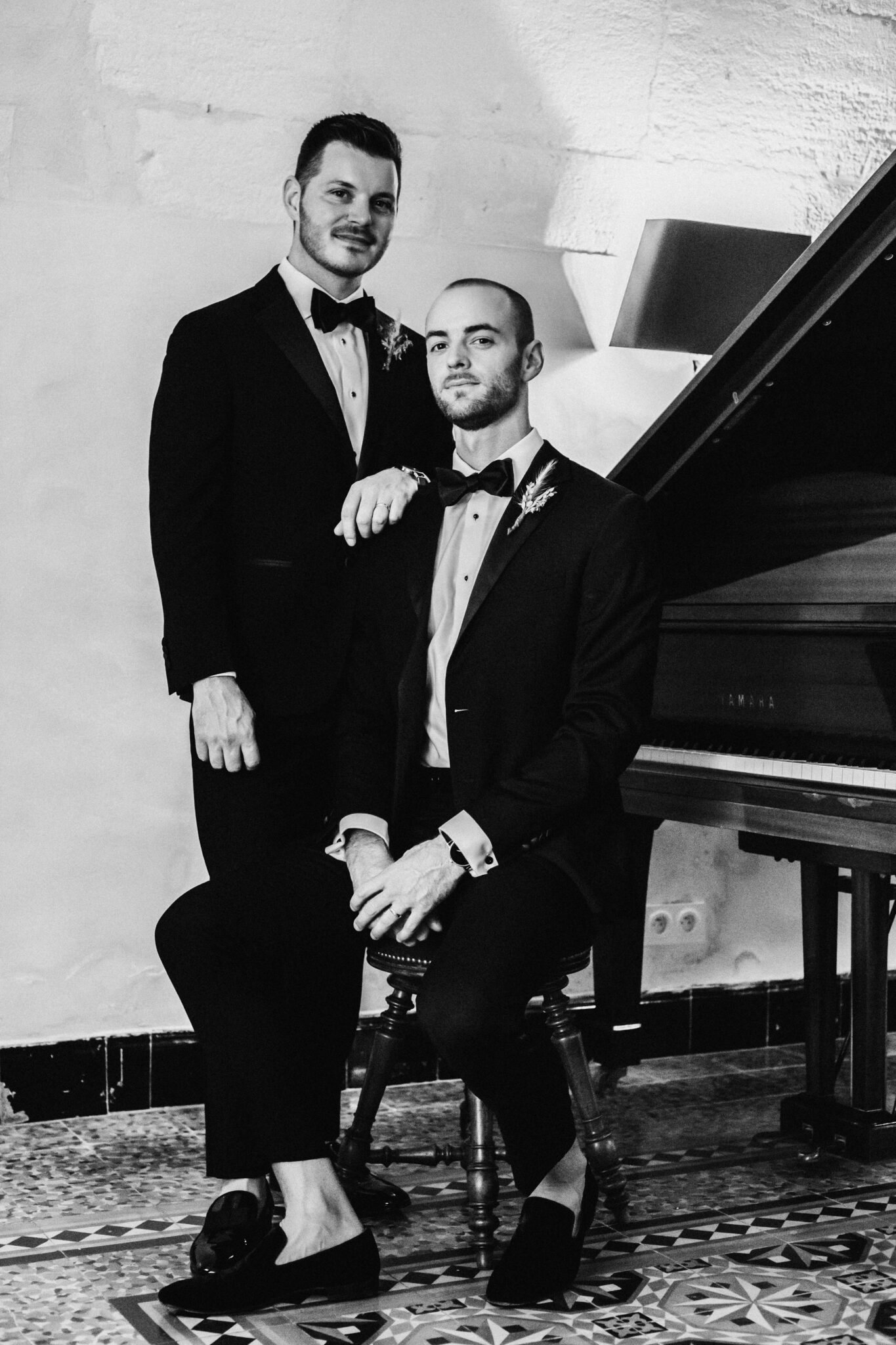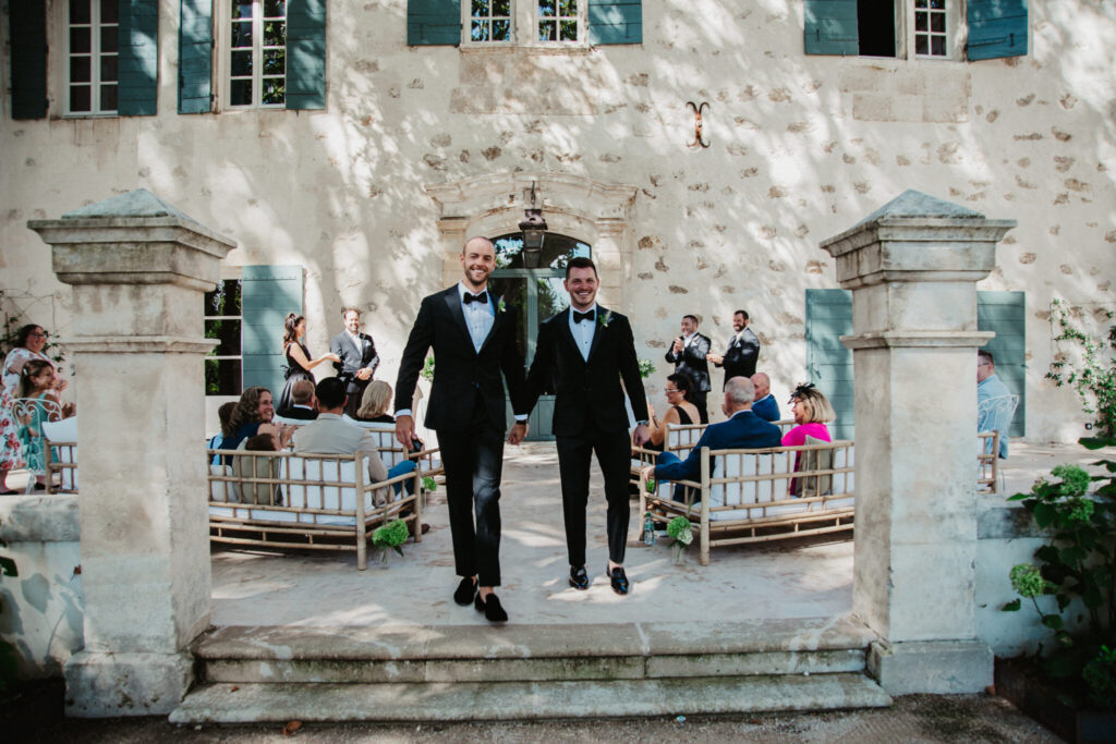 “As two fairly casual guys, we didn’t need an entire day to prepare, so we took our time, laughing, chatting and savouring glasses of exquisite French wine. Before the ceremony, we shared a “first look” in the villa’s charming piano room – a moment filled with laughter, happy tears and a joyful anticipation of the life ahead,” says Colin.