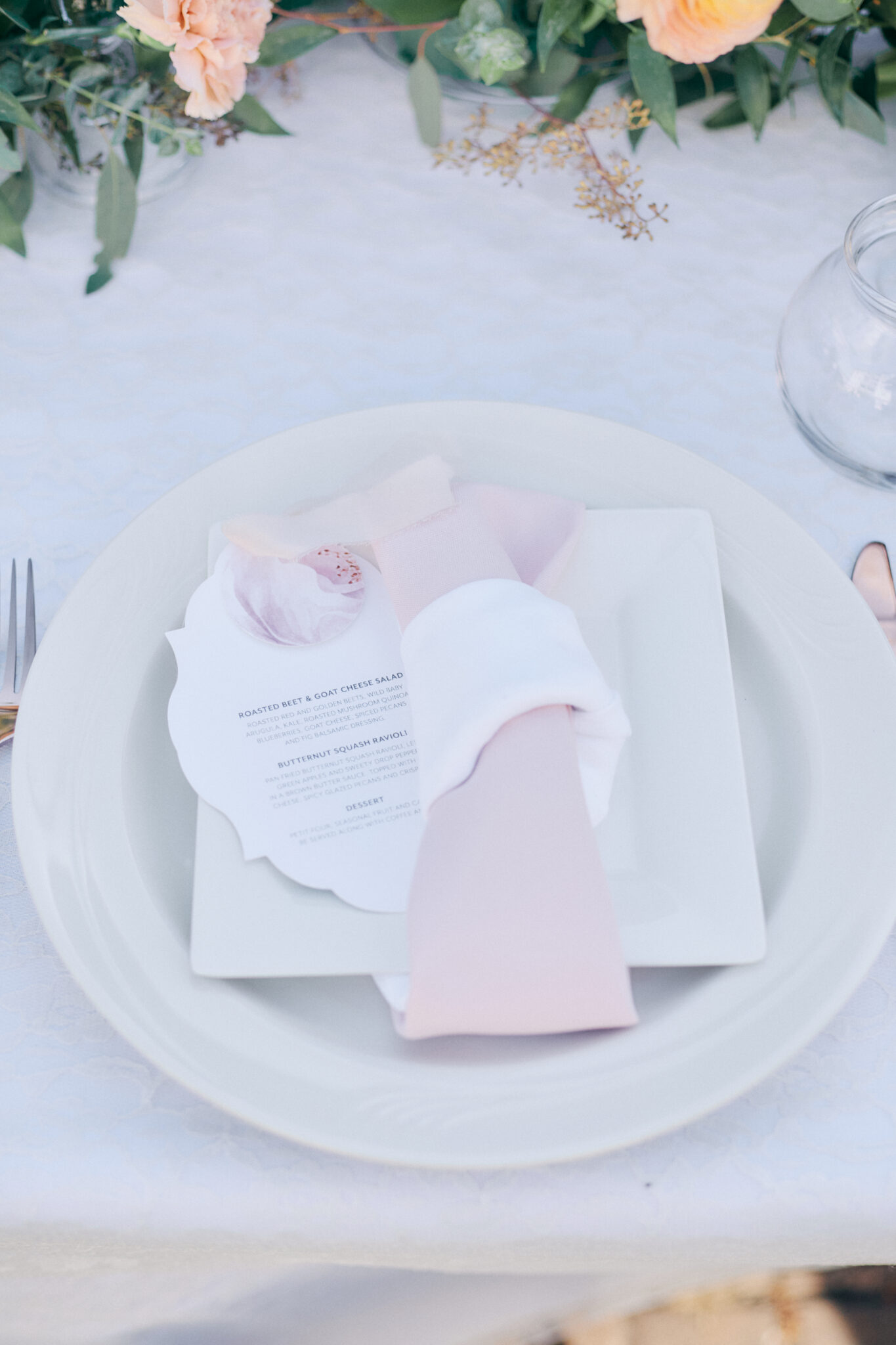 And don’t even get us started on the stationery! The floral-inspired invitation suite gave guests a preview of the beauty to come, styled perfectly with blush and apricot blooms, soft silk ribbons and velvet ring boxes. It was a flatlay moment straight from a bridal mood board.