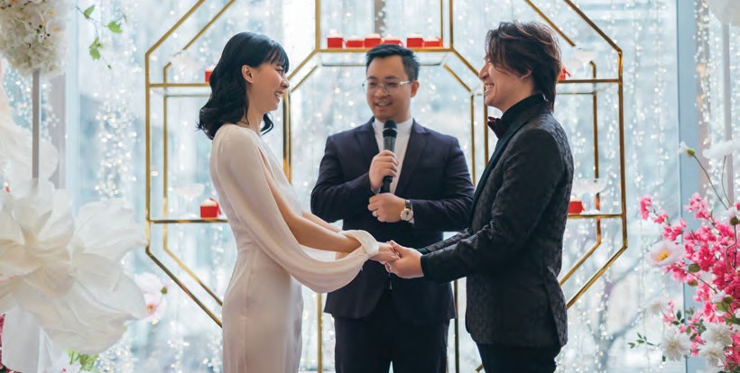 “It was a heartfelt tribute to Chinese wedding customs with a stylish, modern twist,” she says. “We started with the traditional Chinese tea ceremony. Every part of it symbolizes deep respect, love and the union of two families.”