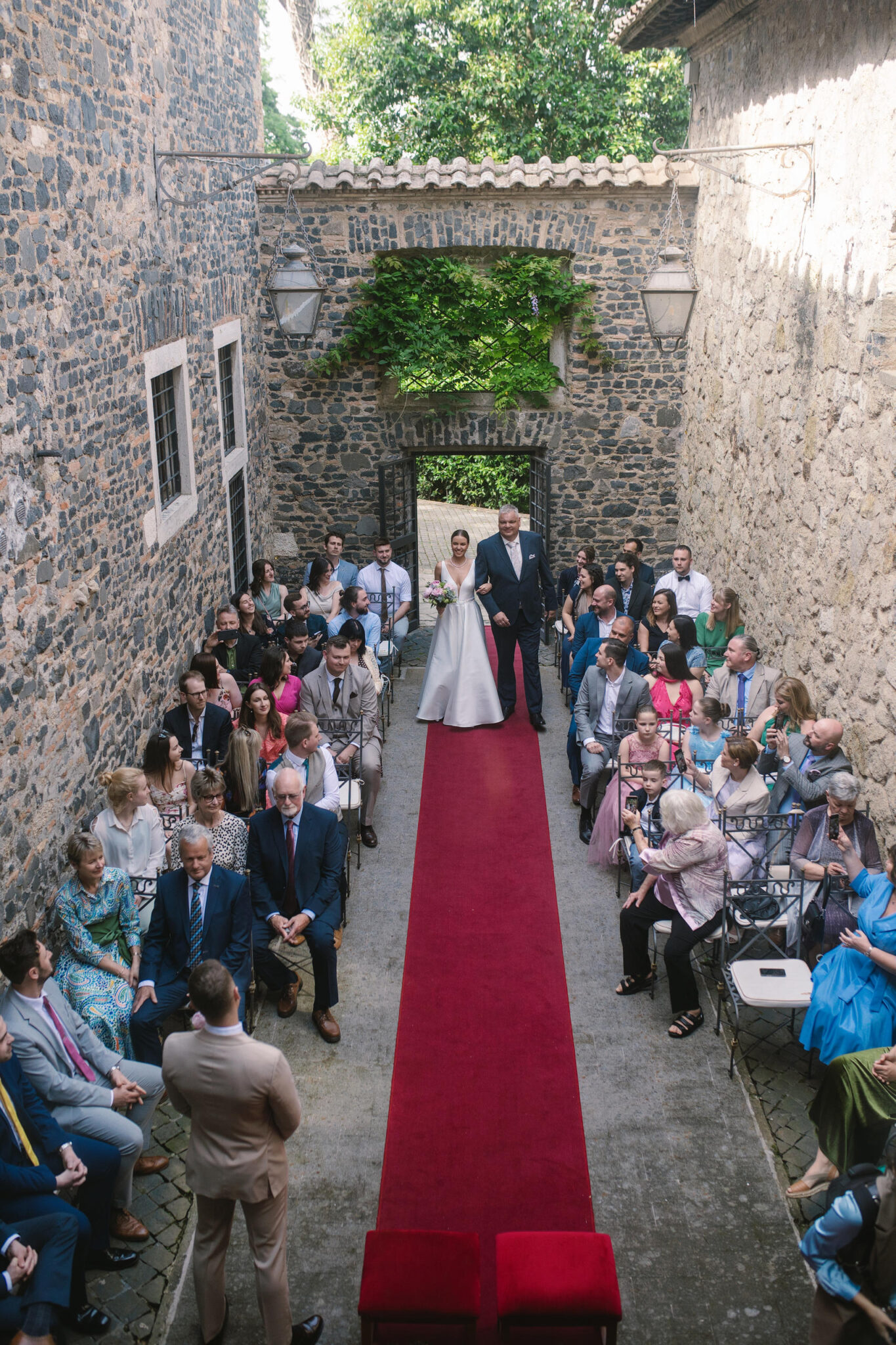 The couple wanted to embrace the wedding venue, Castello della Castelluccia (a few kilometres from the centre of Rome), and its natural beauty. They also wanted to go for a timeless/elegant look, says Zsófia. “My dad knew the venue through his work, and he had already asked us long before our engagement if we would like to get married in this exact castle.”